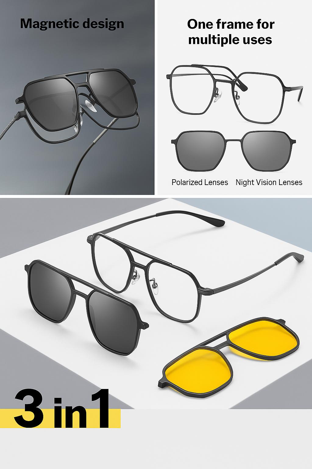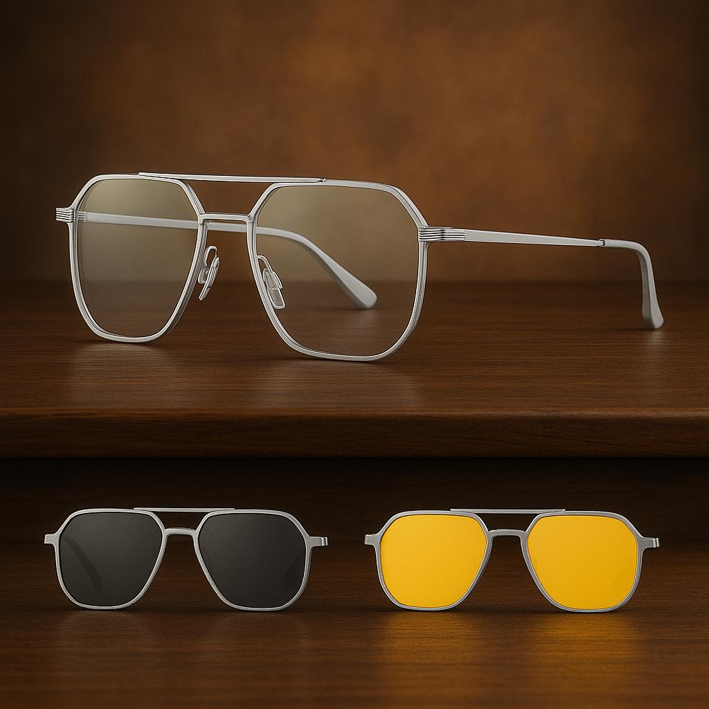 Verbeter je brillen met onze innovatieve clip-on zonnebrillen, de perfecte combinatie van mode en functie. Meerdere brillen meenemen als je uit gaat ? Dat hoeft niet meer! Of je nu binnen of buiten bent, onze clip-on zonnebrillen zijn ontworpen om je bril in een paar seconden moeiteloos om te toveren in een stijlvolle zonnebril.